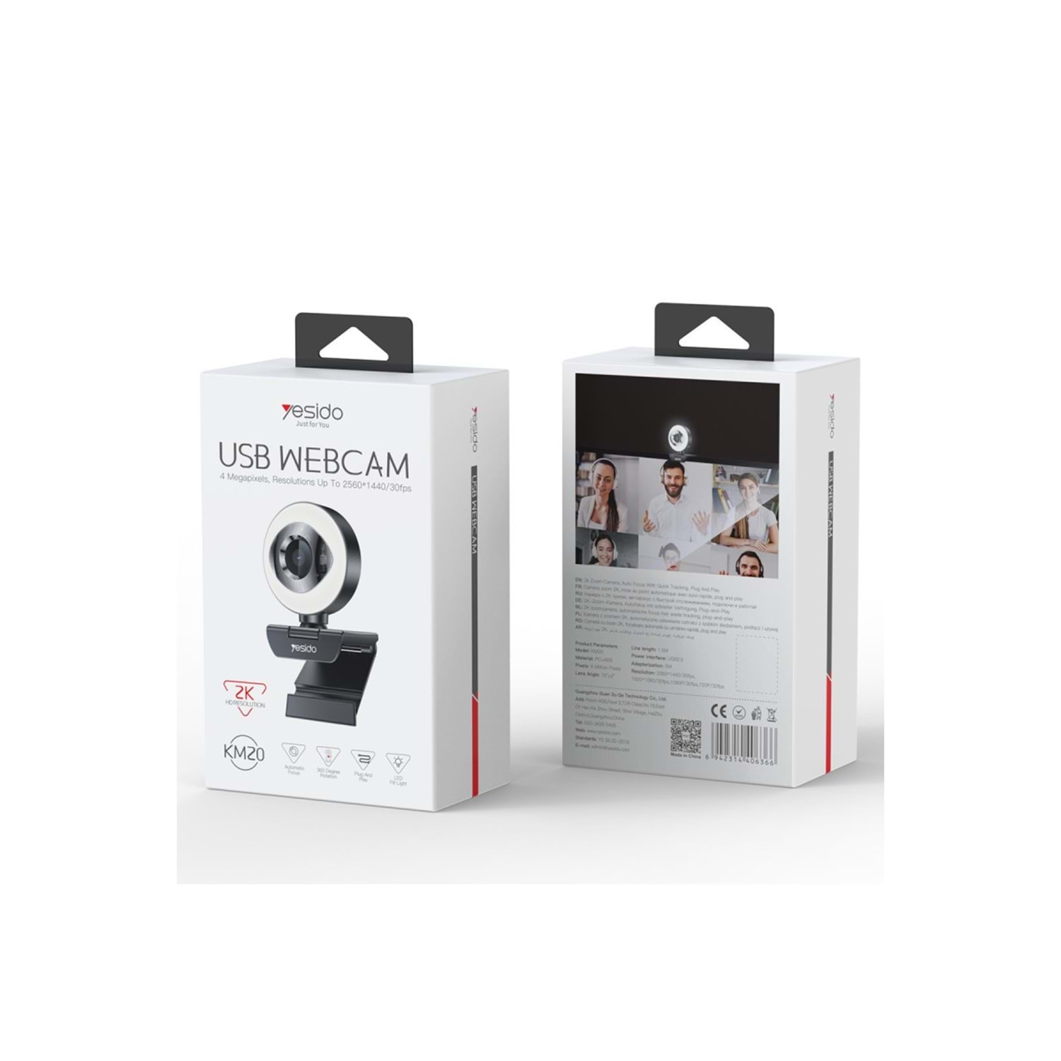 Yesido KM20 2K 4MP Led Aydınlatmalı USB Web Kamera